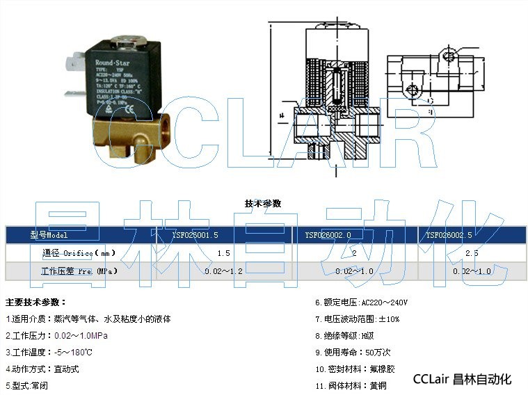 YSF026001.5,YSF026002.0,YSF026002.5,兩位兩通微型通用電磁閥