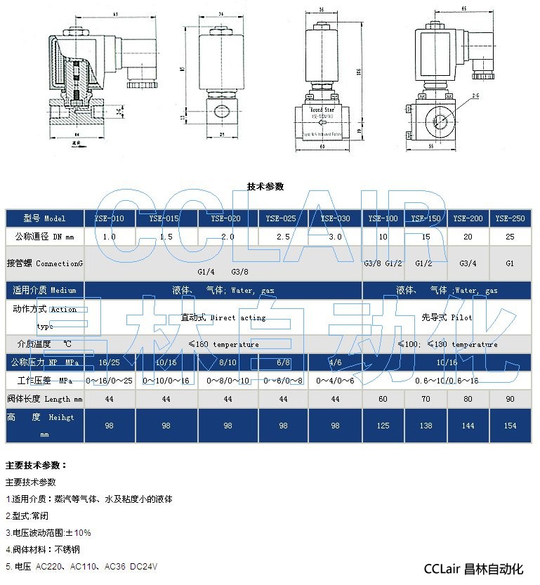 YSE-010,YSE-015,YSE-020,YSE-025,YSE-030,YSE-100,兩通高壓電磁閥