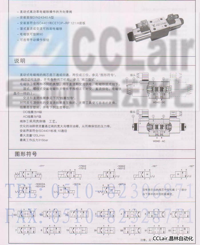 詳細(xì)信息 WDKE-1611/2,WDKE-1630/2,WDKE-1670/2,WDKE-1710/2,WDKE-1751/2,電磁方向控制閥