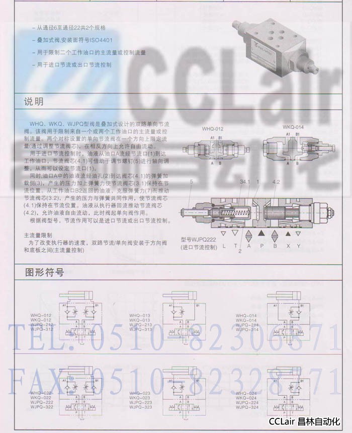 詳細(xì)信息 WJPQ-212,WJPQ-213,WJPQ-214,WJPQ-222,WJPQ-223,WJPQ-224,疊加式單向節(jié)流閥