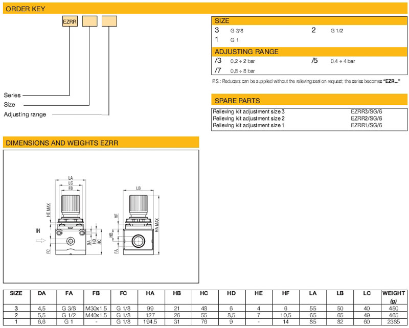 詳細信息 EZRR3/3,EZRR3/5,EZRR3/7,EZRR2/3,EZRR2/5,EZRR2/7,EZRR1/3,waircom減壓器