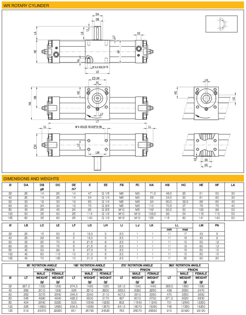 WRM32/90,WRM40/180,WRM50/270,WRF63/180,WRF80/270,WRF100/360,waircom回轉(zhuǎn)缸