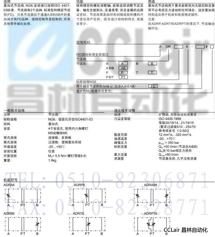 詳細(xì)信息 ADRA6,ADRB6,ADRAB6,ADRP6,ADRT6,ADRPT6,疊加式節(jié)流閥