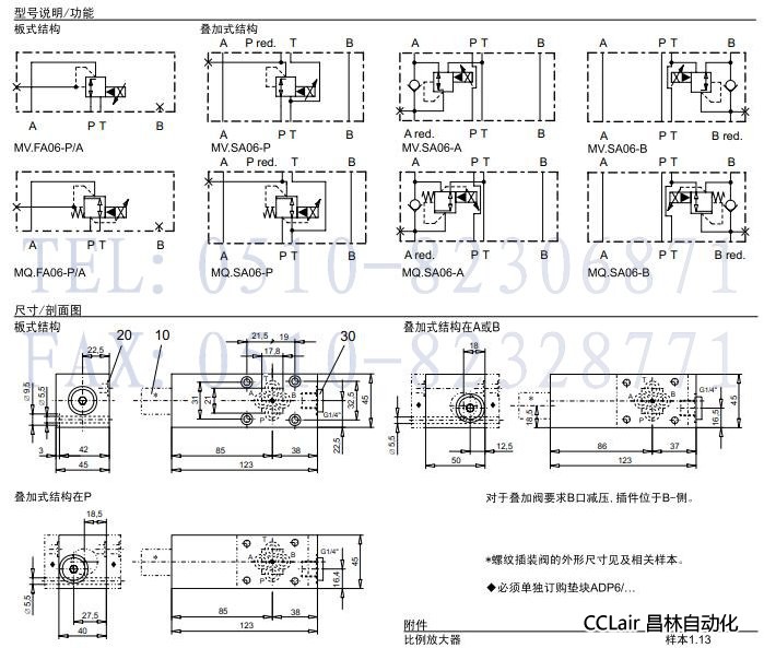詳細(xì)信息 MVPF0A06-P/A,MVPSA06-P,MVPSA06-A,MVPSA06-B,板式和疊加式比例減壓閥