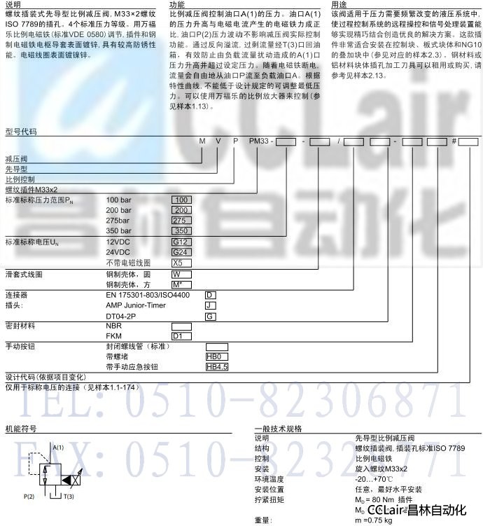 MVPPM33,先導(dǎo)式比例減壓插裝閥 (滑套式線圈)