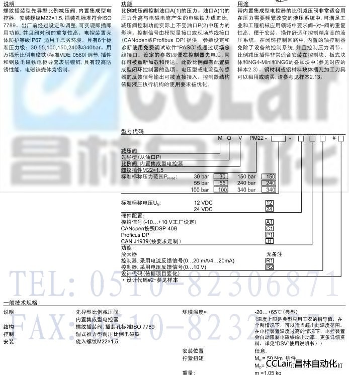 MQVPM22,先導(dǎo)式比例減壓插裝閥(內(nèi)置集成型電控器) 、