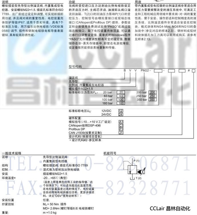 BVVPM22,先導(dǎo)式比例壓力溢流插裝閥(內(nèi)置集成型電控器)