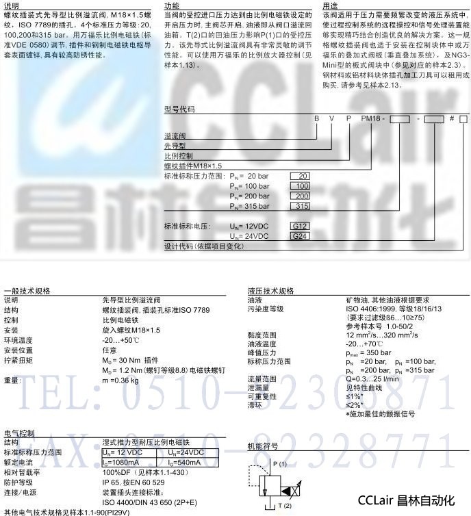 BVPPM18,BVPPM18-315-G24,先導(dǎo)式比例壓力溢流插裝閥