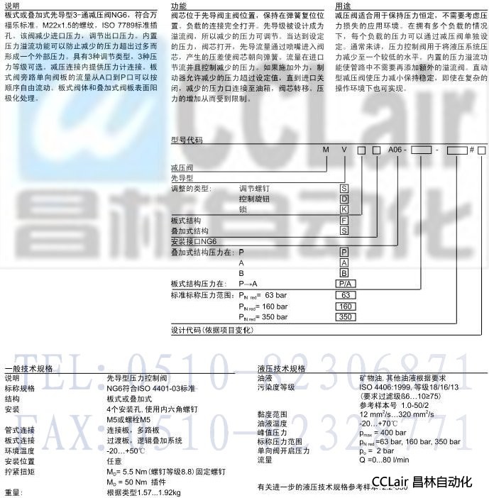 MV.FA06-P/A,MV.SA06-P,MV.SA06-A,MV.SA06-B,先導(dǎo)式減壓閥板式和疊加式結(jié)構(gòu)