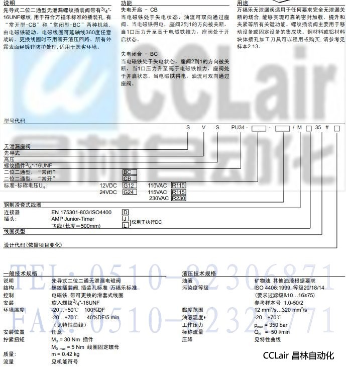 SVSPU34-BC,SVSPU34-CB,先導(dǎo)式插裝式無泄漏電磁閥