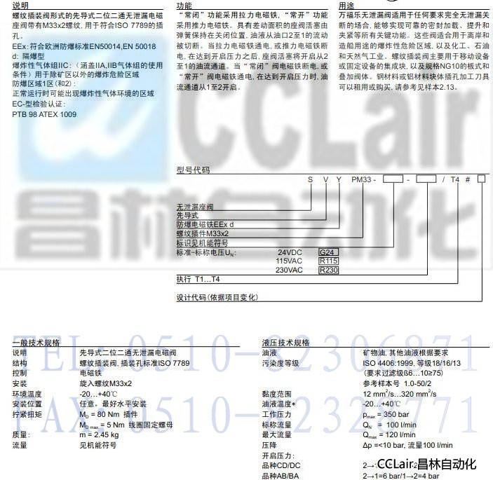 SVYPM33-DC,SVYPM33-CD,SVYPM33-BA,SVYPM33-AB,先導(dǎo)式插裝式防爆無泄漏電磁閥EEx d II C