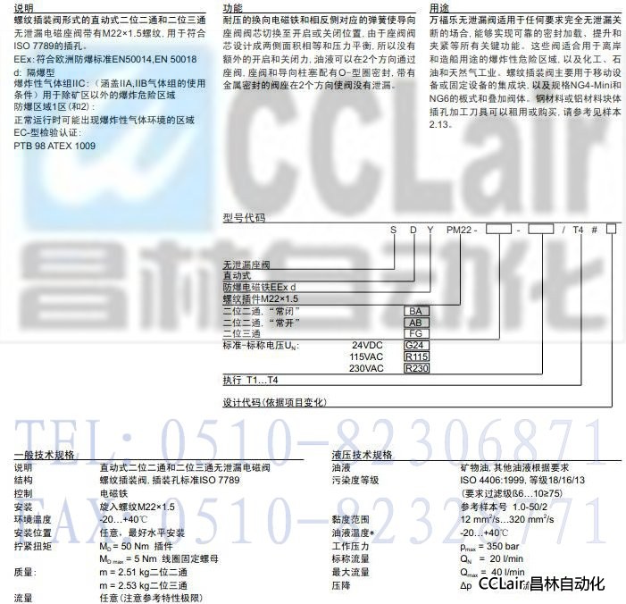 SDYPM22-BA,SDYPM22-AB,SDYPM22-FG,直動(dòng)式插裝式防爆無泄漏電磁閥EEx d II C