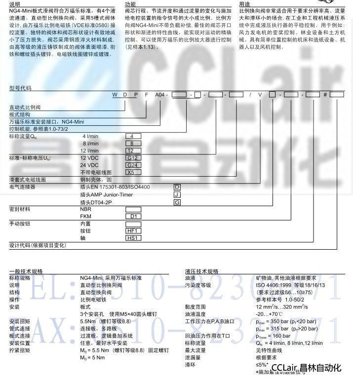 產(chǎn)品: 瀏覽次數(shù):614WDPFA04,比例換向閥(滑套式線圈)