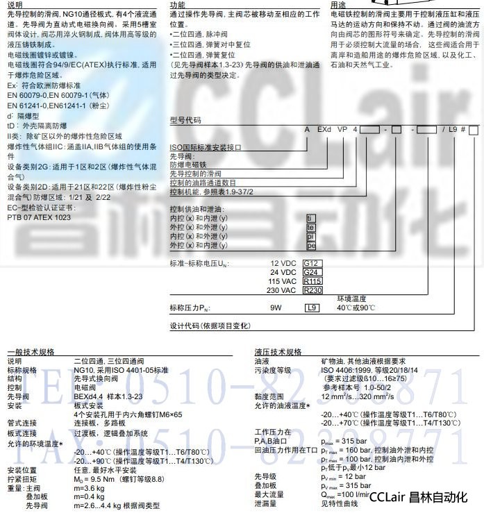 產品: 瀏覽次數:700AEXdVP4x10,AEXdVP4J100,AEXDVP4D102,防爆式先導式電磁換向閥Ex d II C