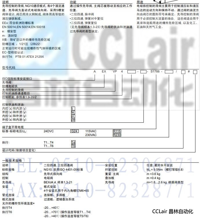 AEXVP4J100,AEXVP4D102,AEXVP4x10-S1788,防爆式先導(dǎo)式電磁換向閥EEx em II