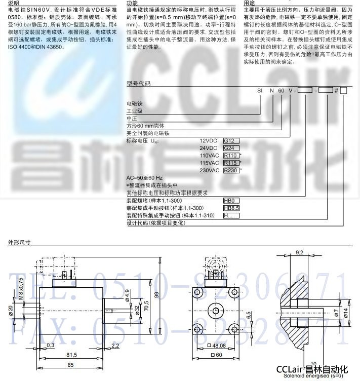 SIN60V,中壓電磁鐵