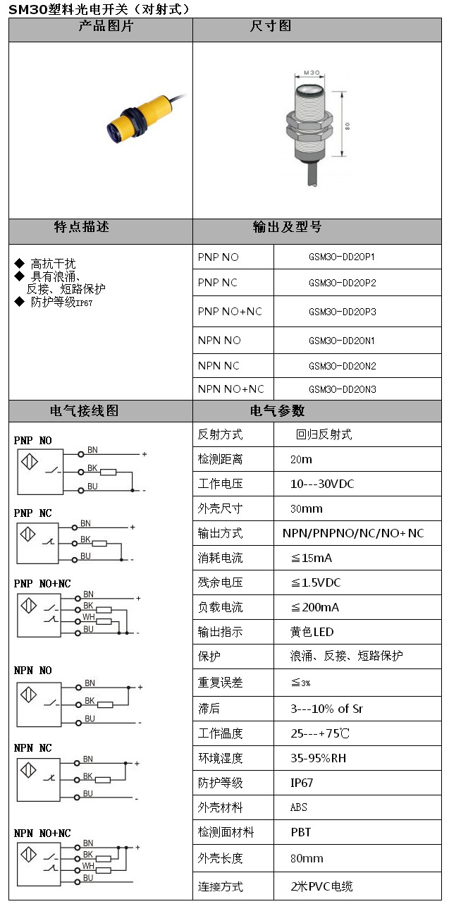 詳細(xì)信息 GSM30-DD20P1,GSM30-DD20P2,GSM30-DD20N1,GSM30-DD20N2,GSM30-DD20N3,SM30光電(對射)