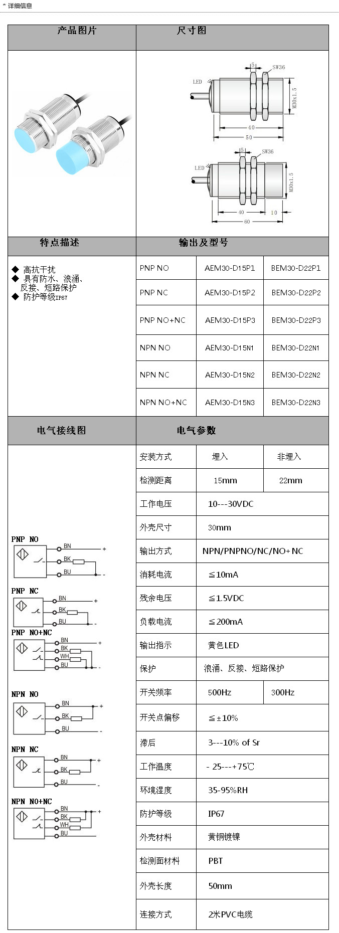 詳細信息 AEM30-D15P1,BEM30-D22P1,AEM30-D15P2,BEM30-D22P2,AEM30-D15N3,M30長距離接近開關(guān)