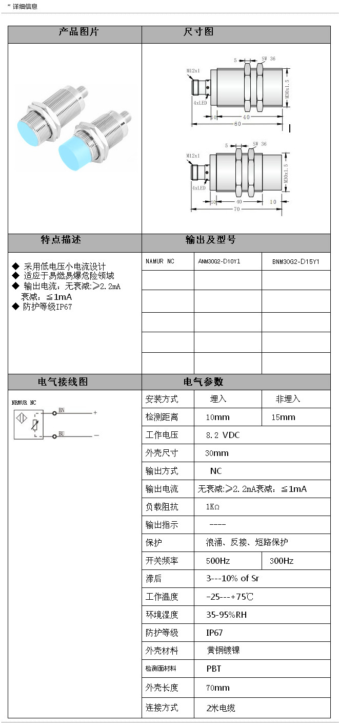 產(chǎn)品: 瀏覽次數(shù):350ANM30G2-D10Y1,BNM30G2-D15Y1,接插式M30本安接近開關(guān)