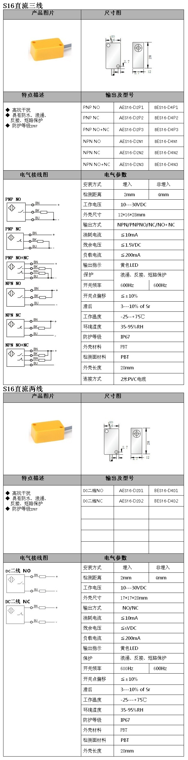 AES16-D2P1,BES16-D4P1,BES16-D4N2,AES16-D2N3,BES16-D4N3,BES16-D4D2,S16直流三二線接近開關(guān)