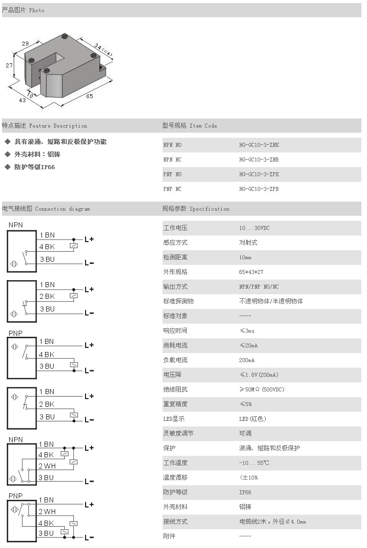 詳細信息 槽型光電開關(guān)/傳感器 HG-GC10-3-ZNK,HG-GC10-3-ZNB,HG-GC10-3-ZPK,HG-GC10-3-ZPB,