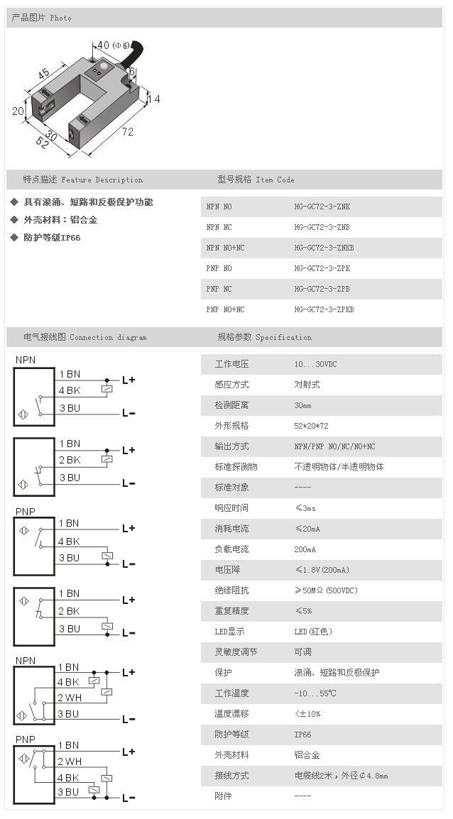 詳細(xì)信息 槽型光電開(kāi)關(guān)/傳感器 HG-GC72-3-ZNK,HG-GC72-3-ZNB,HG-GC72-3-ZNKB,HG-GC72-3-ZPK,HG-GC72-3-ZPB,HG-GC72-3-ZPKB
