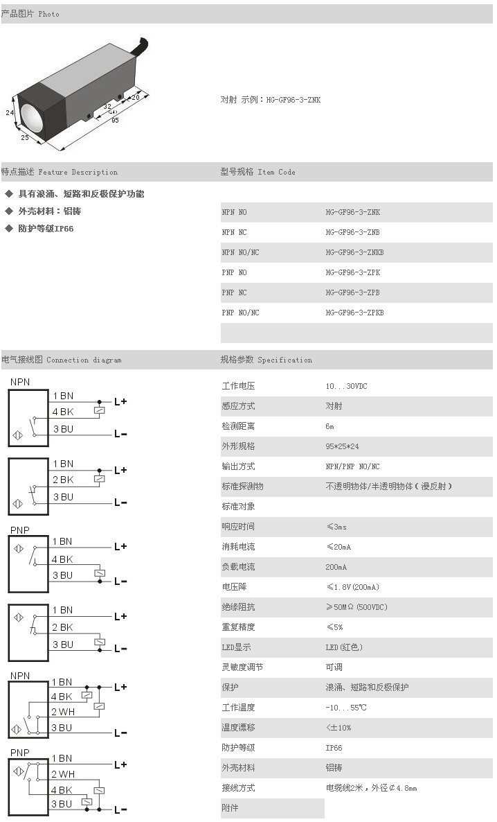 詳細(xì)信息 方型光電開關(guān)/傳感器 HG-GF96-3-ZNK,HG-GF96-3-ZNB,HG-GF96-3-ZNKB,HG-GF96-3-ZPK,HG-GF96-3-ZPB,HG-GF96-3-ZPKB