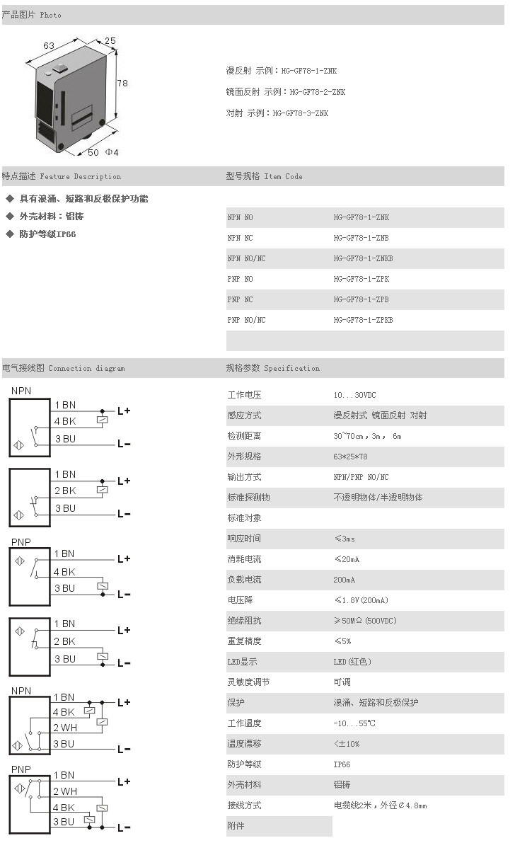 詳細(xì)信息 方型光電開(kāi)關(guān)/傳感器 HG-GF78-1-ZNK,HG-GF78-1-ZNB,HG-GF78-1-ZNKB,HG-GF78-1-ZPK,HG-GF78-1-ZPB,HG-GF78-1-ZPKB,