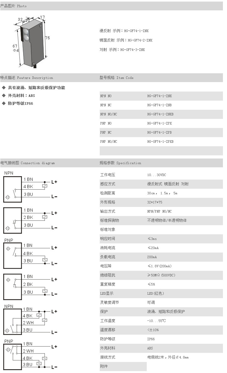 詳細信息 方型光電開關/傳感器 HG-GF74-1-ZNK,HG-GF74-1-ZNB,HG-GF74-1-ZNKB,HG-GF74-1-ZPK,HG-GF74-1-ZPB,HG-GF74-1-ZPKB,