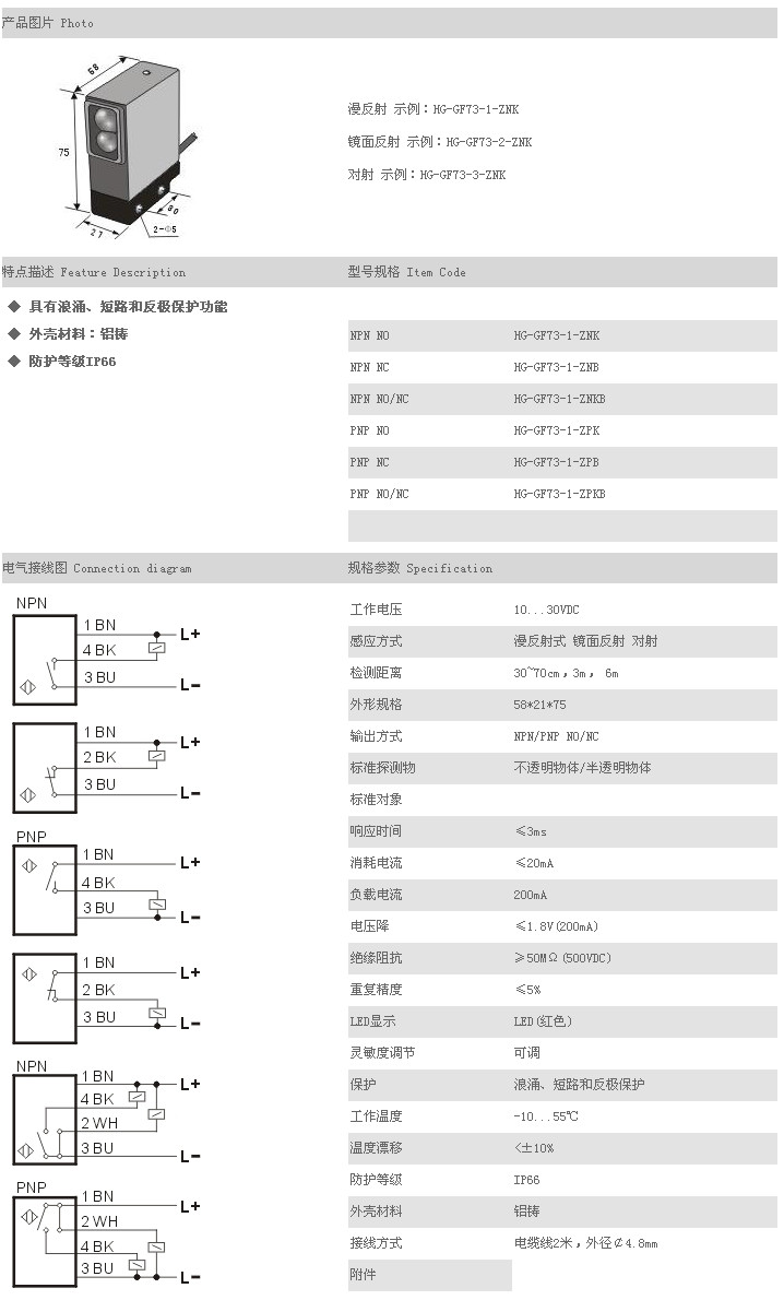 詳細信息 方型光電開關/傳感器 HG-GF73-1-ZNK,HG-GF73-1-ZNB,HG-GF73-1-ZNKB,HG-GF73-1-ZPK,HG-GF73-1-ZPB,HG-GF73-1-ZPKB,