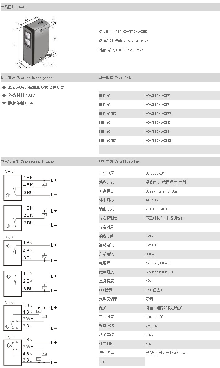 詳細(xì)信息 方型光電開關(guān)/傳感器 HG-GF72-1-ZNK,HG-GF72-1-ZNB,HG-GF72-1-ZNKB,HG-GF72-1-ZPK,HG-GF72-1-ZPB,HG-GF72-1-ZPKB,