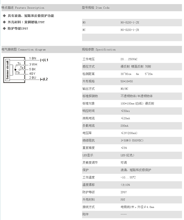產(chǎn)品: 瀏覽次數(shù):314方型光電開關(guān)/傳感器 HG-GL50-1-JK,HG-GL50-1-JB,