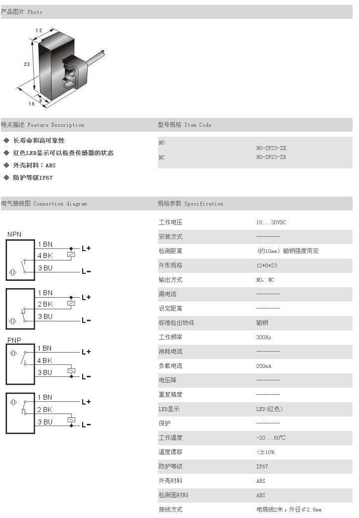 詳細信息 普通型磁性開關(guān) HG-SF23-ZK,HG-SF23-ZB,