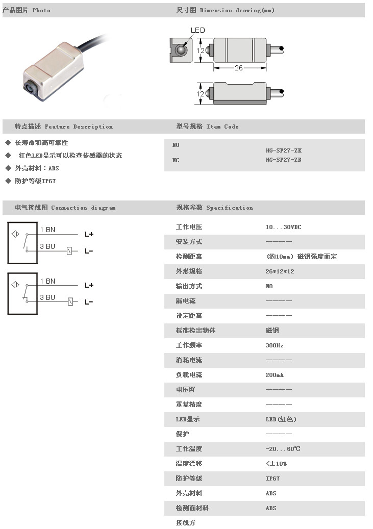 產品: 瀏覽次數:285普通型磁性開關 HG-SF27-ZK,HG-SF27-ZB,