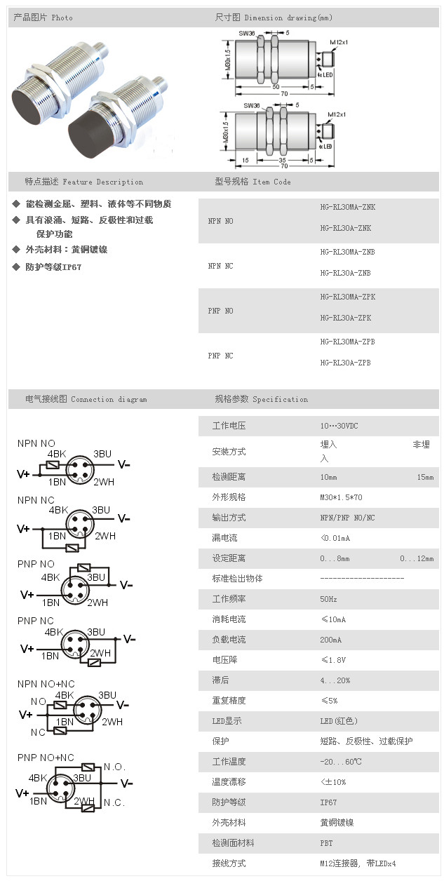 詳細(xì)信息 電容式接近傳感器 HG-RL30MA-ZNK,HG-RL30A-ZNK,HG-RL30MA-ZNB,HG-RL30A-ZNB,HG-RL30MA-ZPK,HG-RL30A-ZPK,HG-RL30MA-ZPB,HG-RL30A-ZPB,