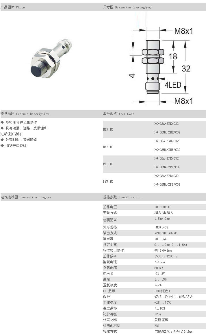 詳細(xì)信息 超小型接近開關(guān) HG-L8A-ZNK/C32,HG-L8MA-ZNK/C32,HG-L8A-ZNB/C32,HG-L8MA-ZNB/C32,HG-L8A-ZPK/C32,HG-L8MA-ZPK/C32,HG-L8A-ZPB/C32,HG-L8MA-ZPB/C32,