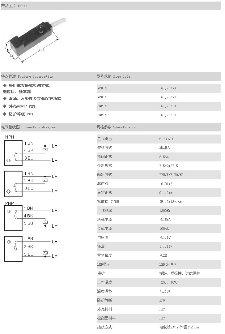 詳細(xì)信息 超小型接近開(kāi)關(guān) HG-J7-ZNK,HG-J7-ZNB,HG-J7-ZPK,HG-J7-ZPB,