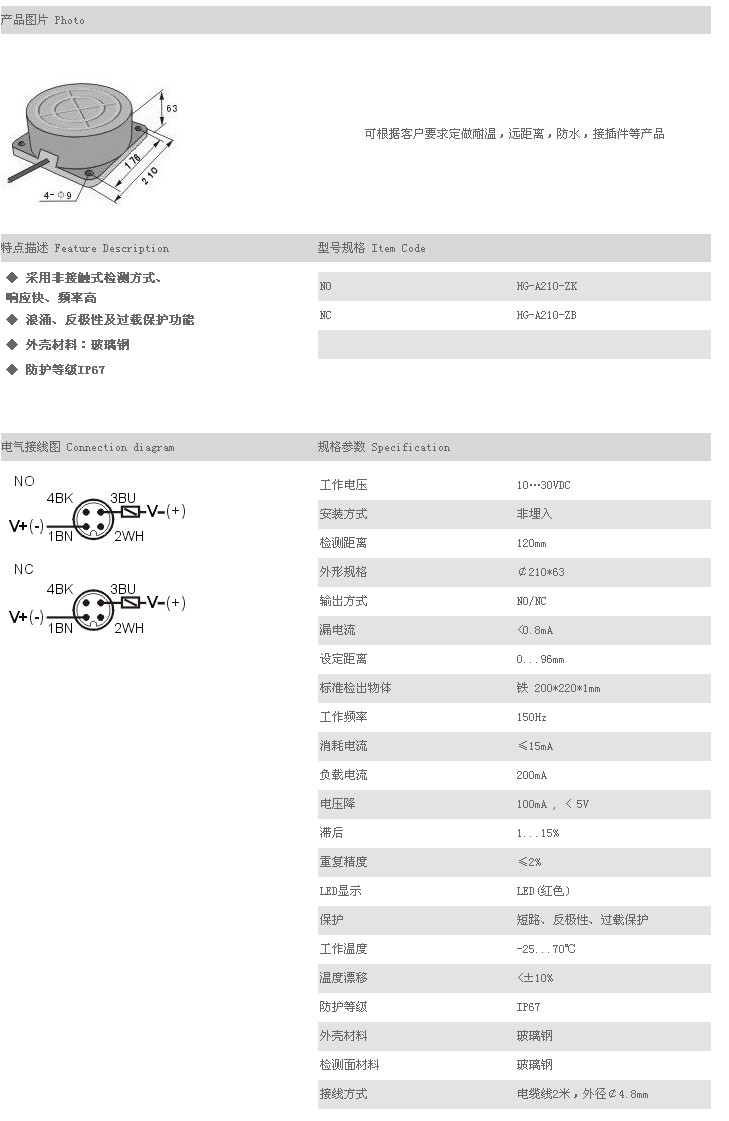 型號: 餅型接近傳感器 HG-A210-ZK,HG-A210-ZB,