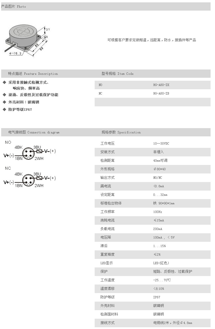 型號(hào): 餅型接近傳感器 HG-A80-ZK,HG-A80-ZB,