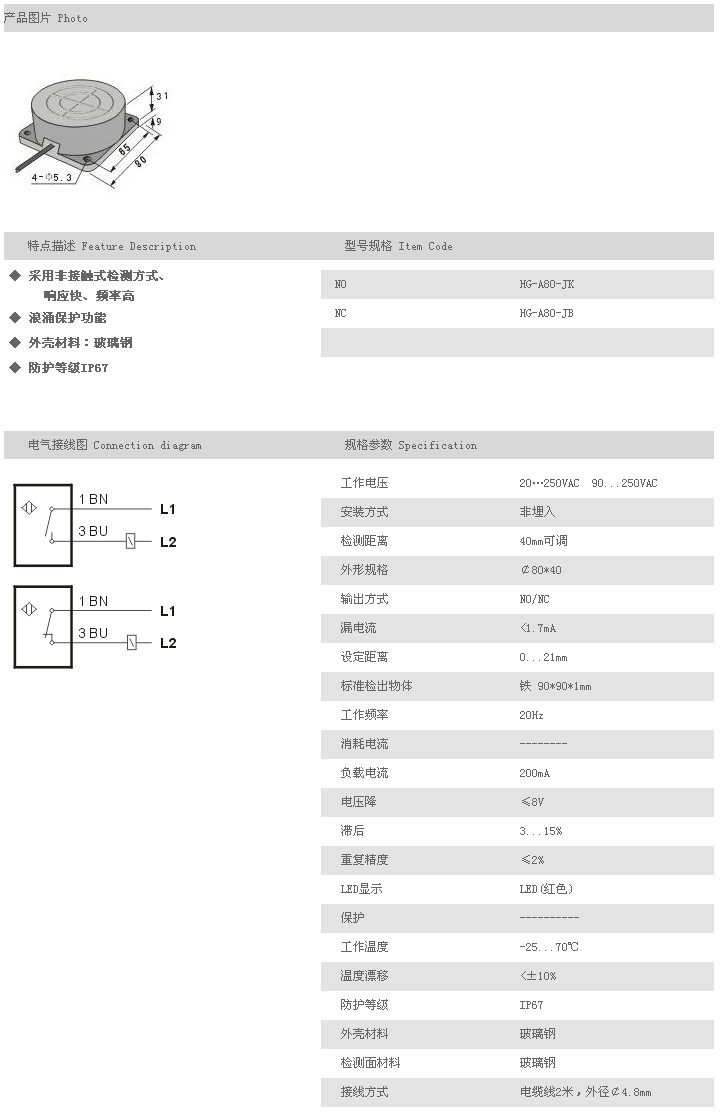產(chǎn)品: 瀏覽次數(shù):1286餅型接近傳感器 HG-A80-JK,HG-A80-JB,