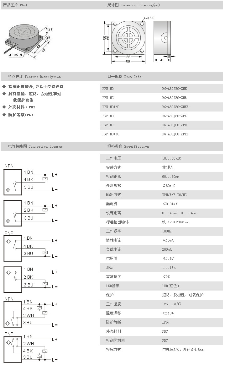 詳細(xì)信息 遠(yuǎn)距離型接近開(kāi)關(guān) HG-A80J80-ZNK,HG-A80J80-ZNB,HG-A80J80-ZNKB,HG-A80J80-ZPK,HG-A80J80-ZPB,HG-A80J80-ZPKB,
