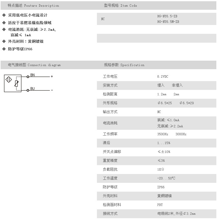 型號(hào): Y6.5防爆型接近開關(guān) HG-NY6.5-ZB,HG-NY6.5M-ZB,