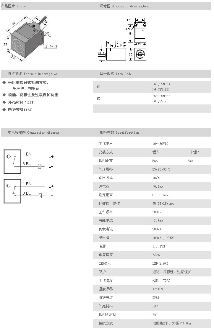 方型接近開關(guān) HG-J25M-ZK,HG-J25-ZK,HG-J25M-ZB,HG-J25-ZB,