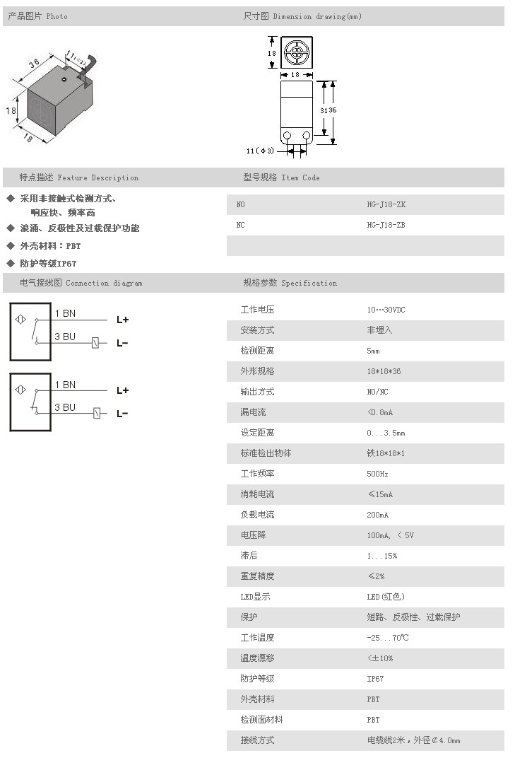 產(chǎn)品: 瀏覽次數(shù):615方型接近開關(guān) HG-J18-ZK,HG-J18-ZB,