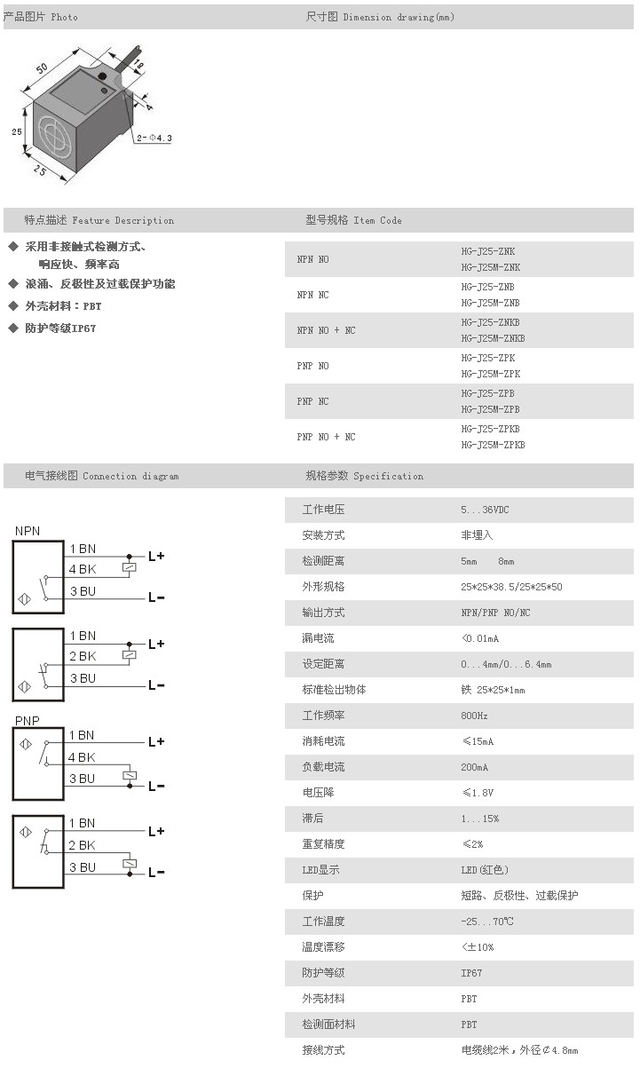 詳細(xì)信息 J25方型接近開關(guān) HG-J25-ZNK,HG-J25M-ZNK,HG-J25-ZNB,HG-J25M-ZNB,HG-J25-ZNKB,HG-J25M-ZNKB,HG-J25-ZPK,HG-J25M-ZPK,HG-J25-ZPB,HG-J25M-ZPB,HG-J25-ZPKB,HG-J25M-ZPKB,
