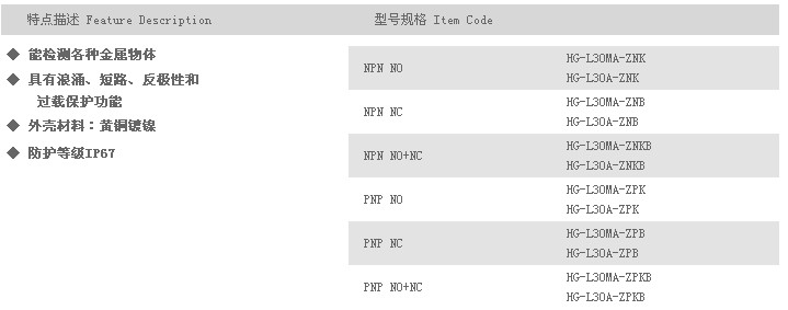 詳細(xì)信息 L30A圓柱型接近開關(guān) HG-L30MA-ZNK,HG-L30A-ZNK,HG-L30MA-ZNB,HG-L30A-ZNB,HG-L30MA-ZNKB, HG-L30A-ZNKB,HG-L30MA-ZPK,HG-L30A-ZPK,HG-L30MA-ZPB,HG-L30A-ZPB,HG-L30MA-ZPKB,HG-L30A-ZPKB,