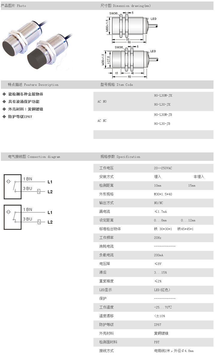 您當(dāng)前的位置:首頁 » 供應(yīng)產(chǎn)品 » L30圓柱型接近開關(guān) HG-L30-JK,HG-L30M-JK,HG-L30-JB,HG-L30M-JB,