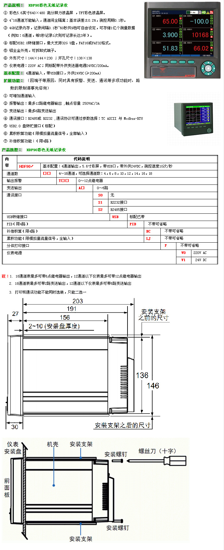 詳細信息 HDF90-4,HDF90-6,HDF90-8,HDF90-10,HDF90-12,HDF90-14,HDF90-16,HDF90-18,HDF90,彩色無紙記錄儀