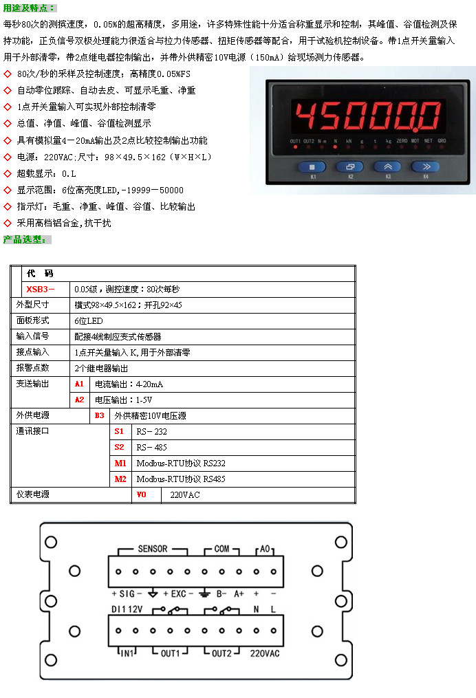XSB3-A1B3S1V0,XSB3-A1B3S2V0,XSB3-A2B3M1V0,XSB3-A2B3M2V0,XSB3,力值顯示控制儀
