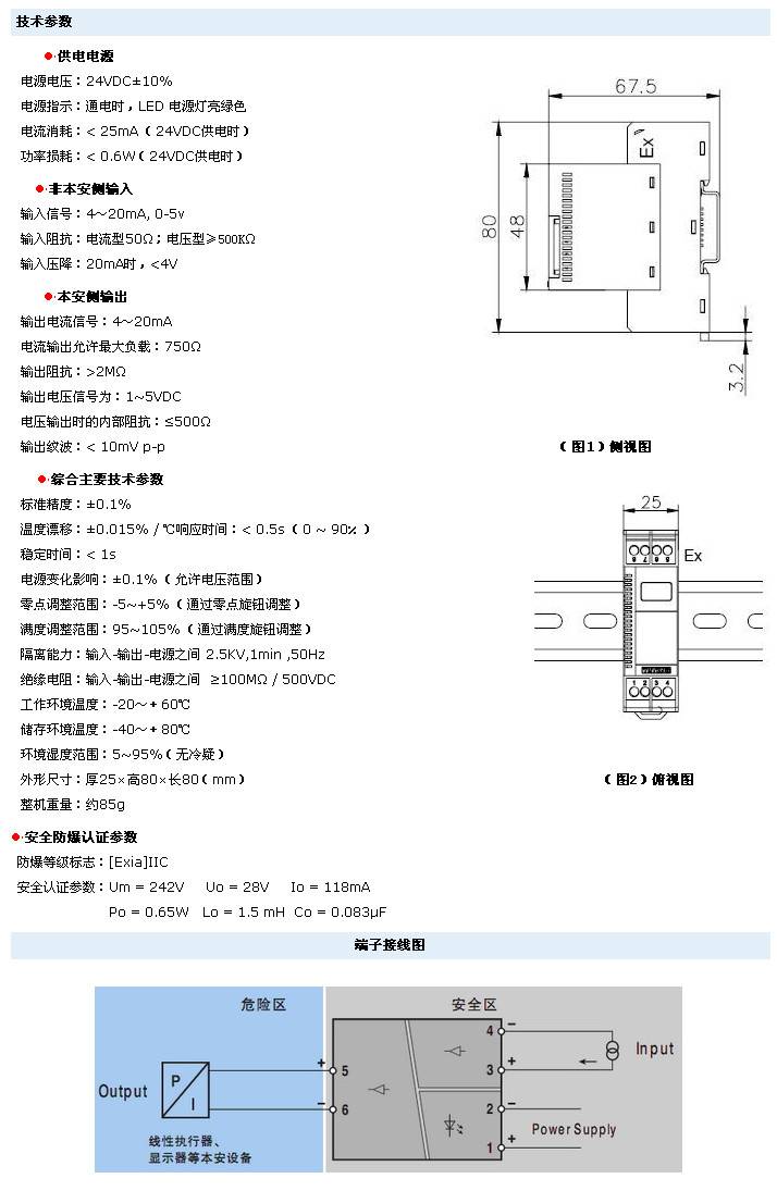 本隔離安全柵需要獨(dú)立的直流電源供電,供電電源-輸入-輸出之間隔離。